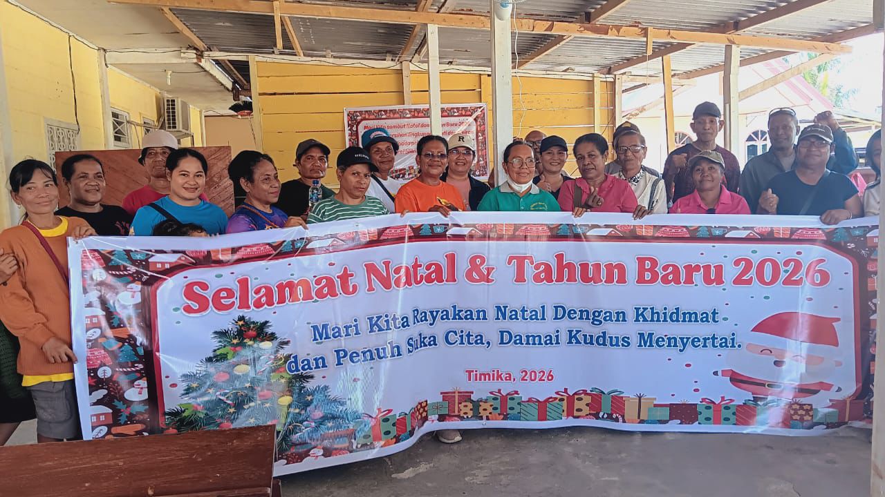 MIMIKA – Seksi Seni Budaya Komisi Pengembangan Sumber Daya Manusia Klasis (PSDMK) GKI Mimika menggelar kegiatan kerja bakti dan pembagian paket sembako bagi warga Jemaat GKI KASIH Amamapare, Sabtu (13/12/2025). Kegiatan ini merupakan bagian dari rangkaian penyambutan Natal 2025 dan Tahun Baru.